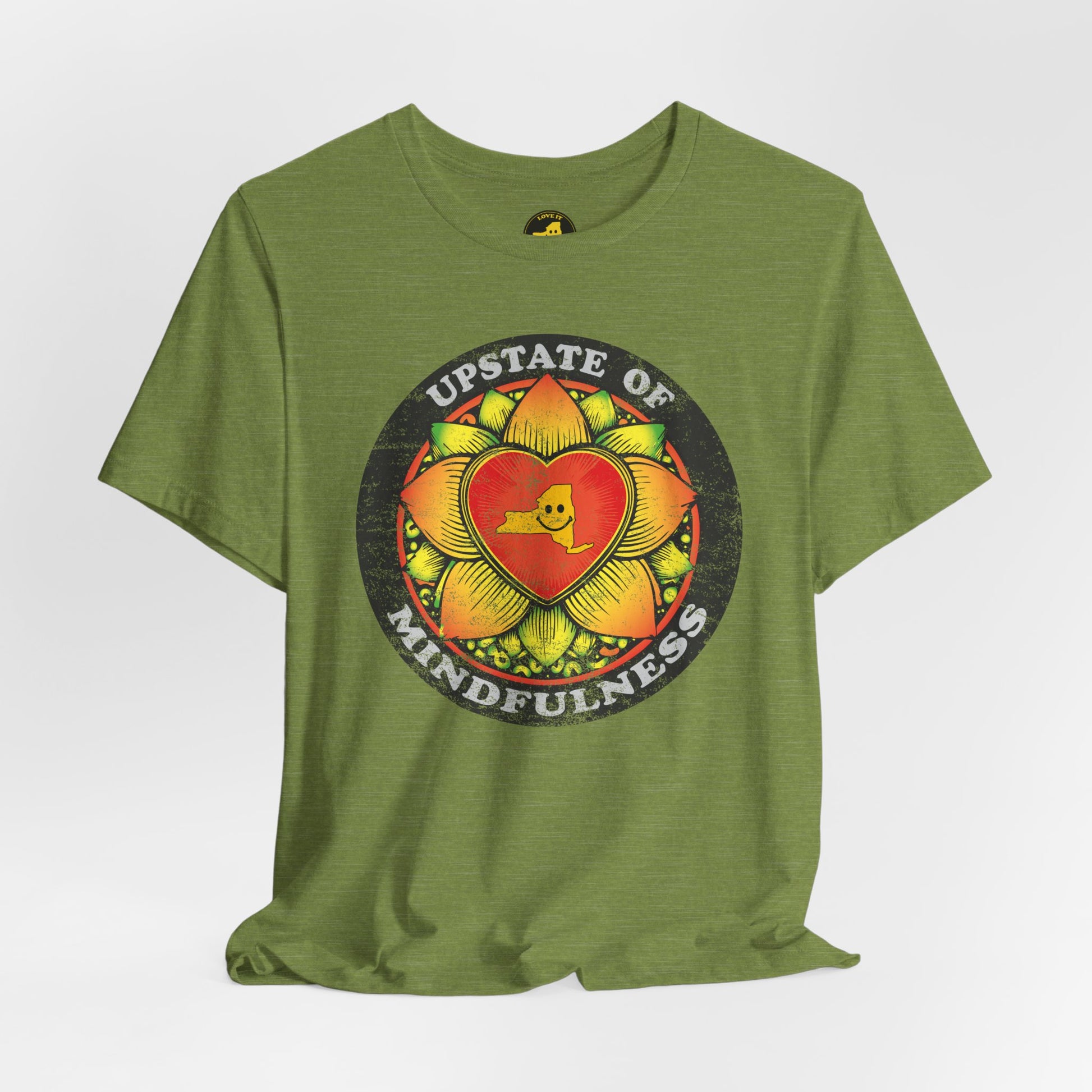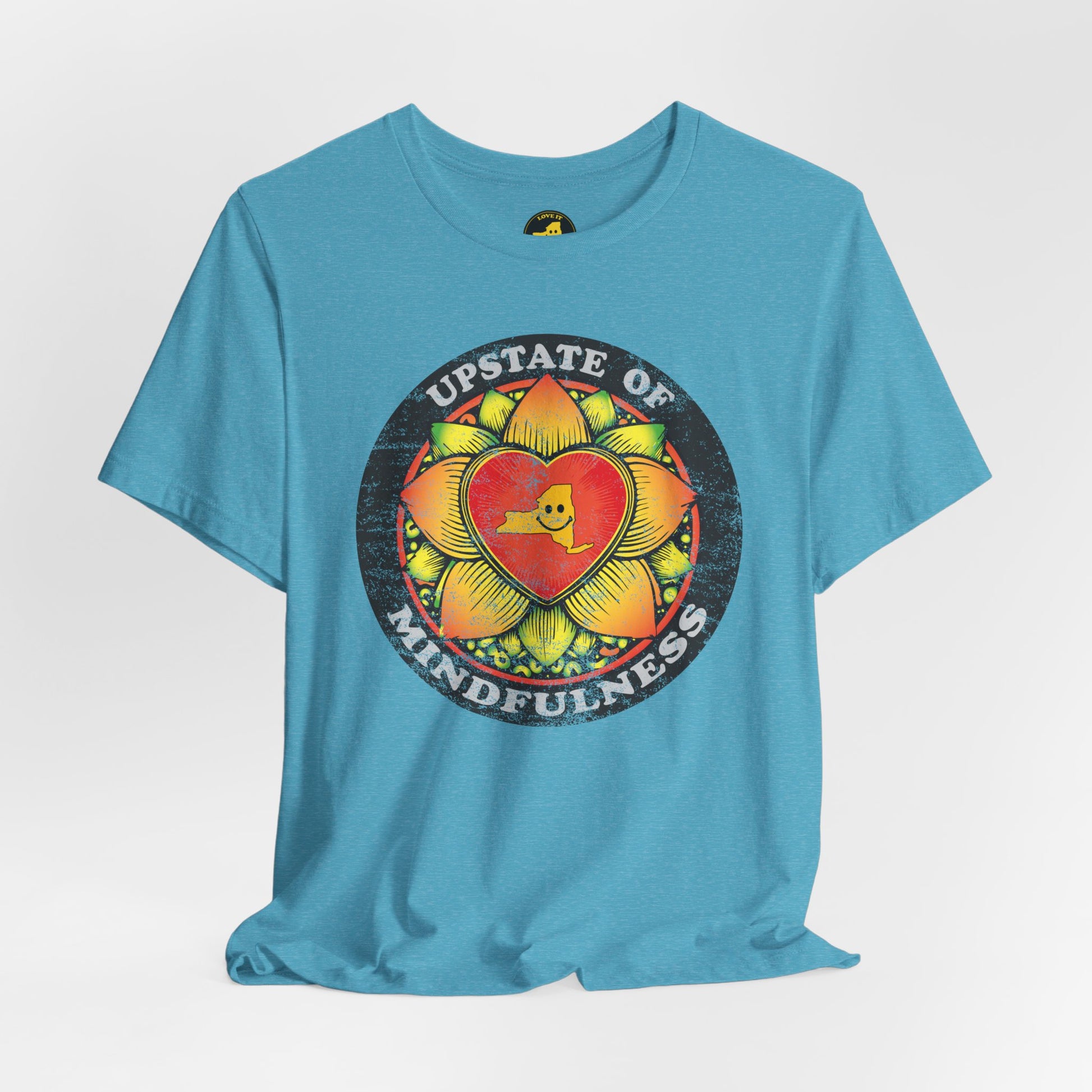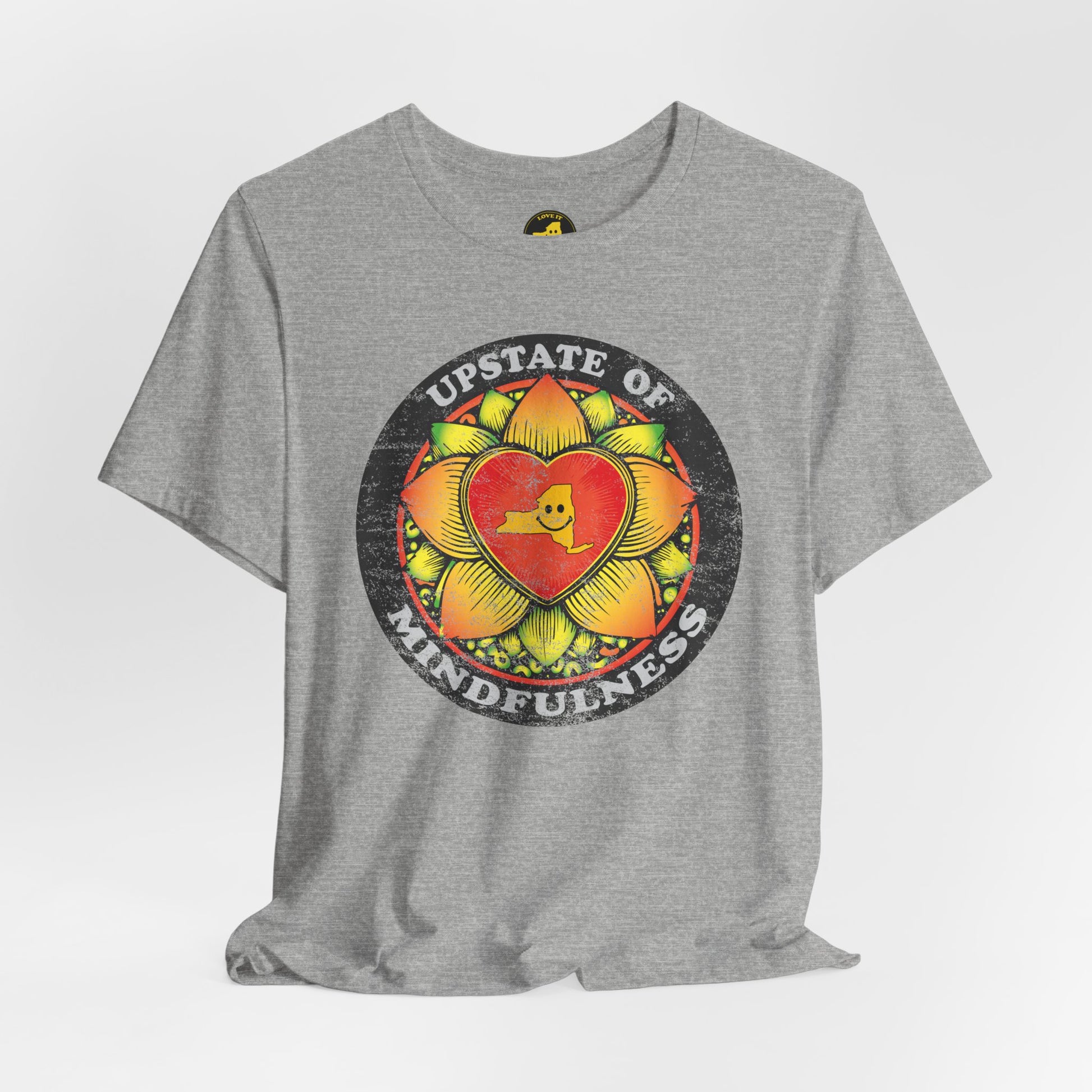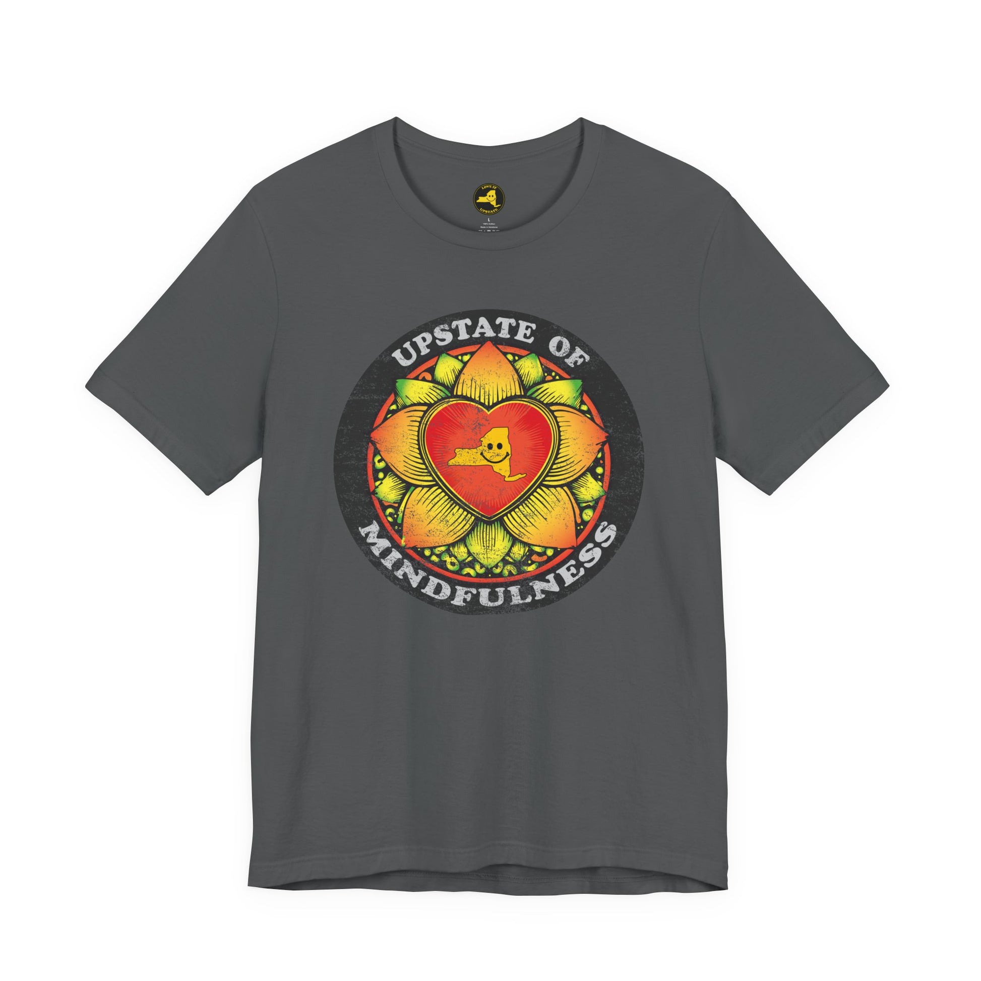 Soft, breathable, and built to hold its shape, this tee carries a warm, hand-drawn mindflower heart art that reads “Upstate of Mindfulness.” It feels like a slow morning — warm light, coffee, a little quiet — captured on lightweight Airlume cotton. The worn, vintage-style print gives the shirt a lived-in, comfortable look that layers easily under a flannel or stands out on its own. Every stitch is thoughtful: side seams and shoulder tape keep the fit steady, the ribbed collar holds its shape, and the tear-away label keeps irritation away. Ethically made and REACH certified, this shirt blends everyday comfort with a gentle, mindful spirit you’ll reach for again and again.